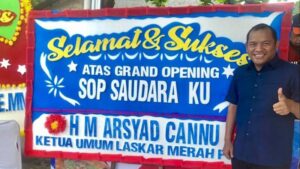 H.M. Arsyad Cannu selaku ketua umum Laskar Merah Putih (LMP) turut hadir dalam pembukaan rumah makan “Sop Saudaraku” serta menikmati lezatnya hidangan sop khas Makasar ini.